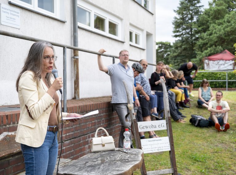Der Startschuss fiel am Haus in der Sonne des Bauvereins Babelsberg, einem bahnbrechenden Wohnhaus für alleinstehende